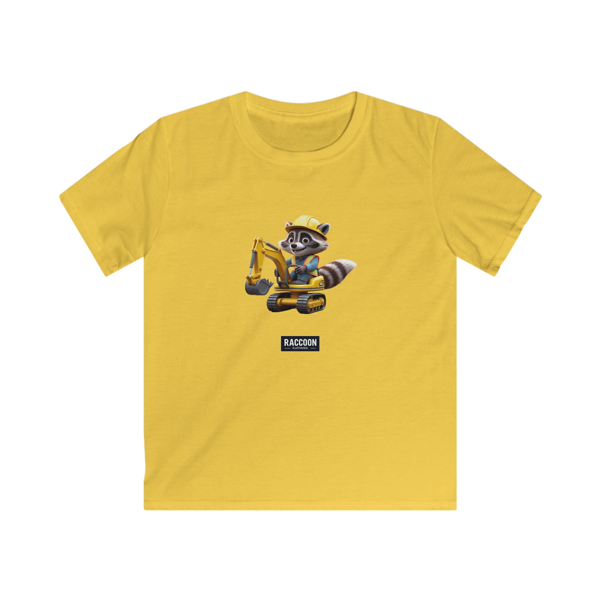 Featuring a hardworking raccoon in a safety vest and yellow helmet, confidently operating a mini digger, this design is perfect...
