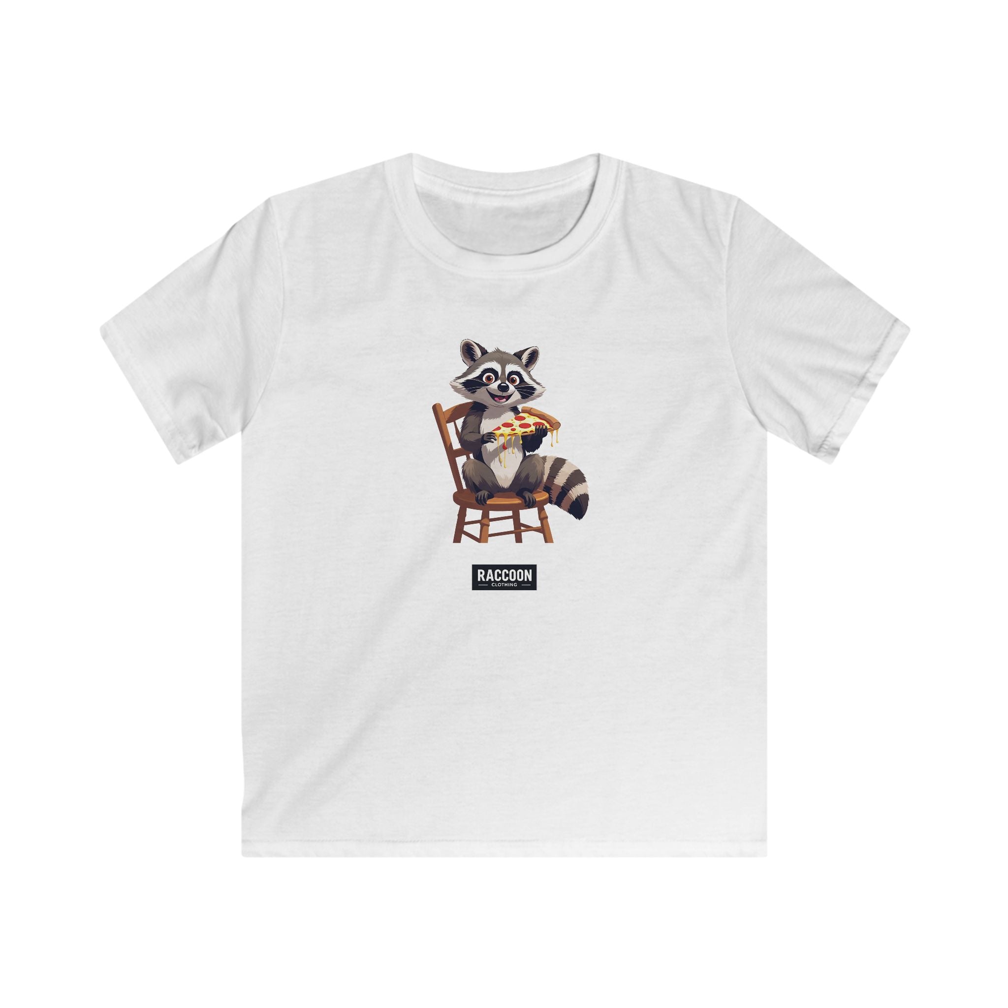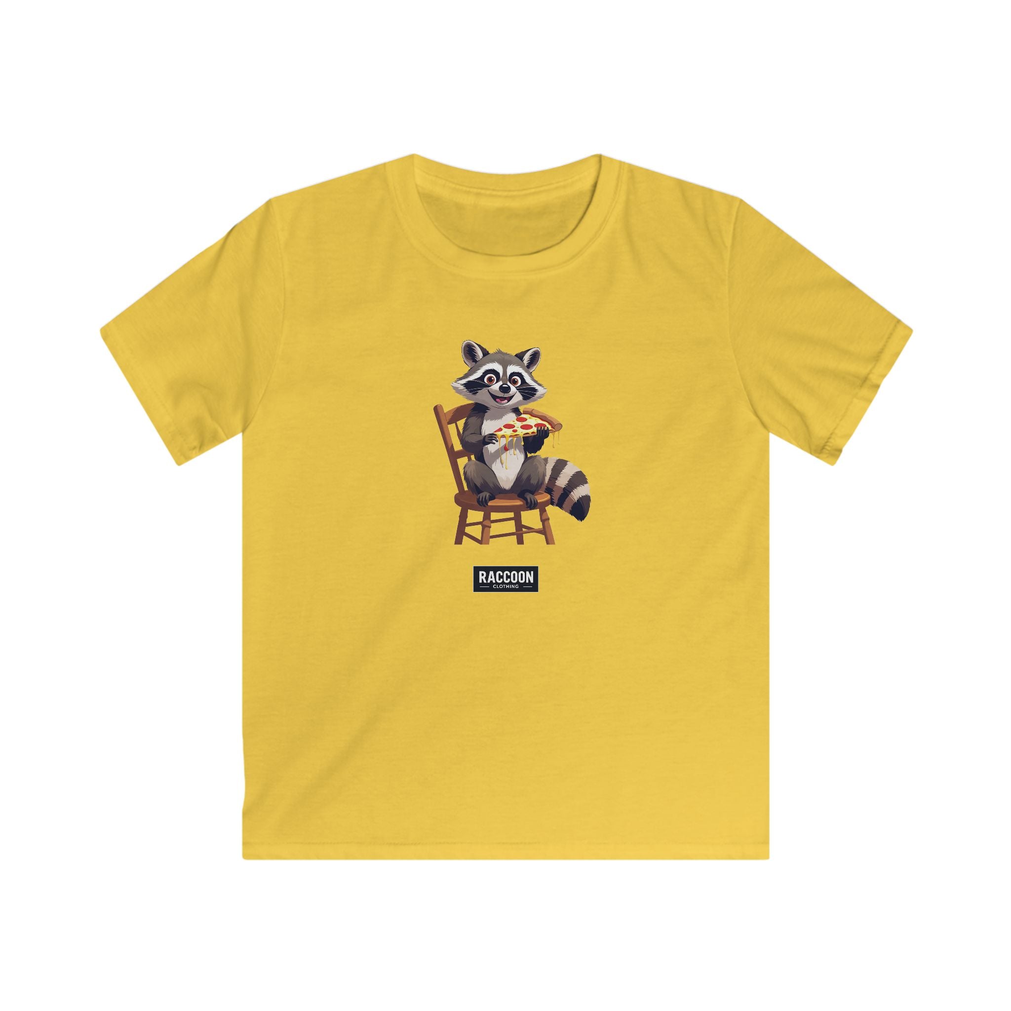 This irresistibly cute design features a chubby raccoon happily munching on a cheesy pizza slice while sitting on a chair,...