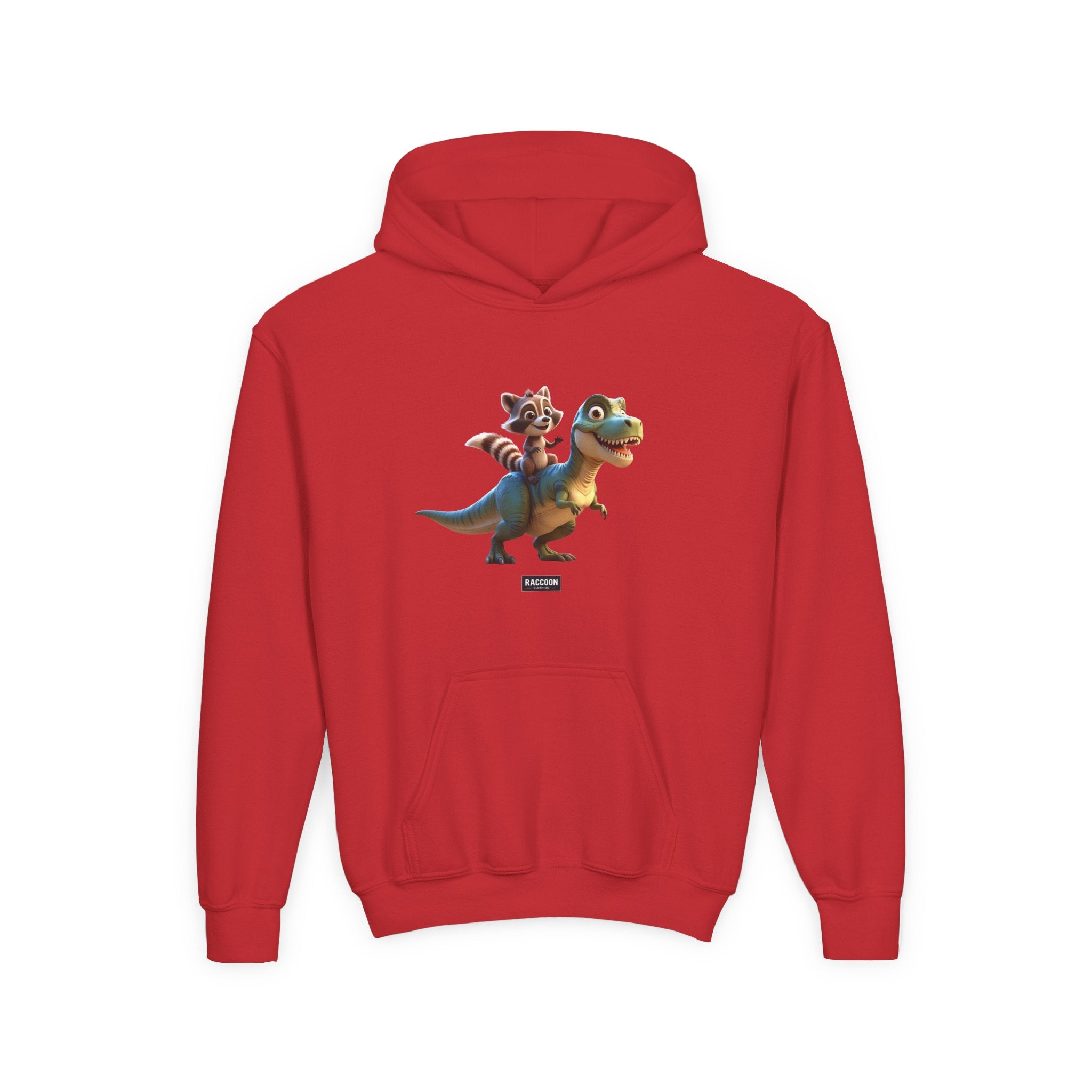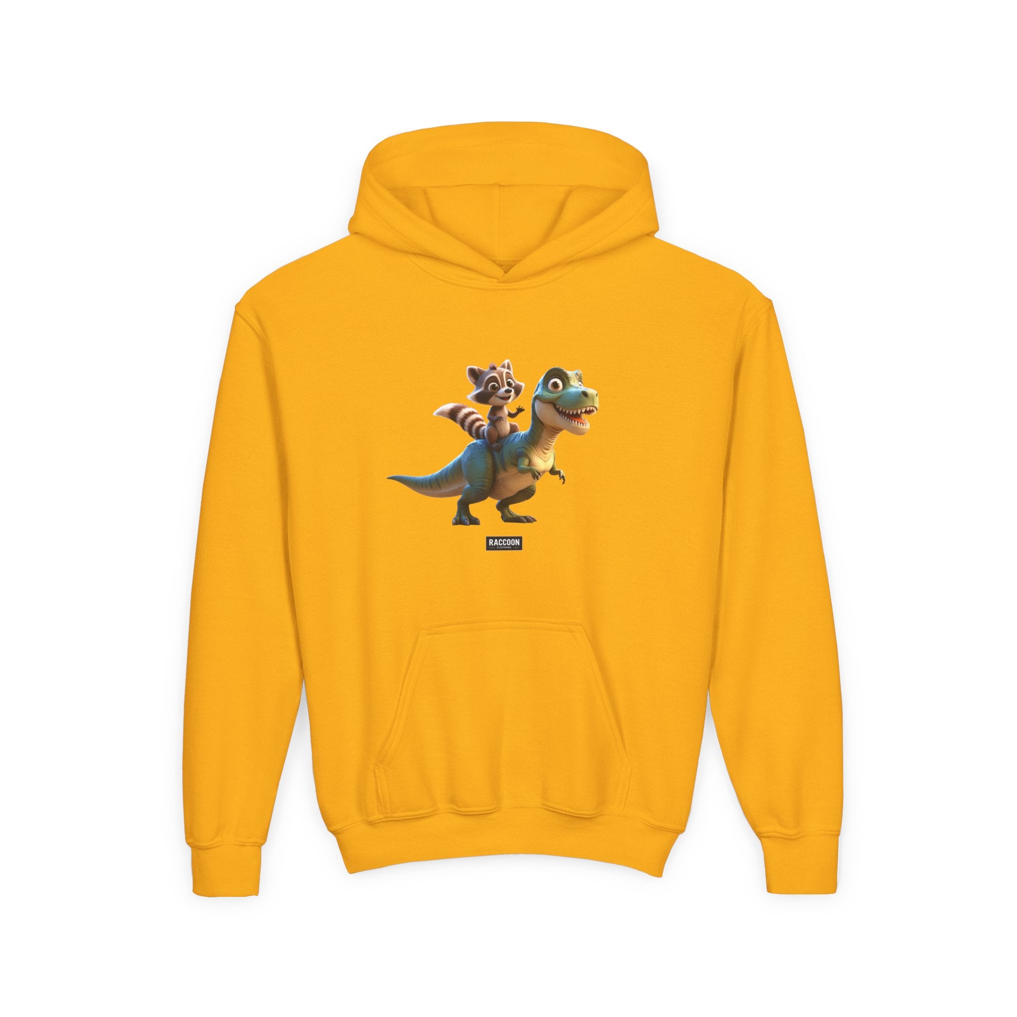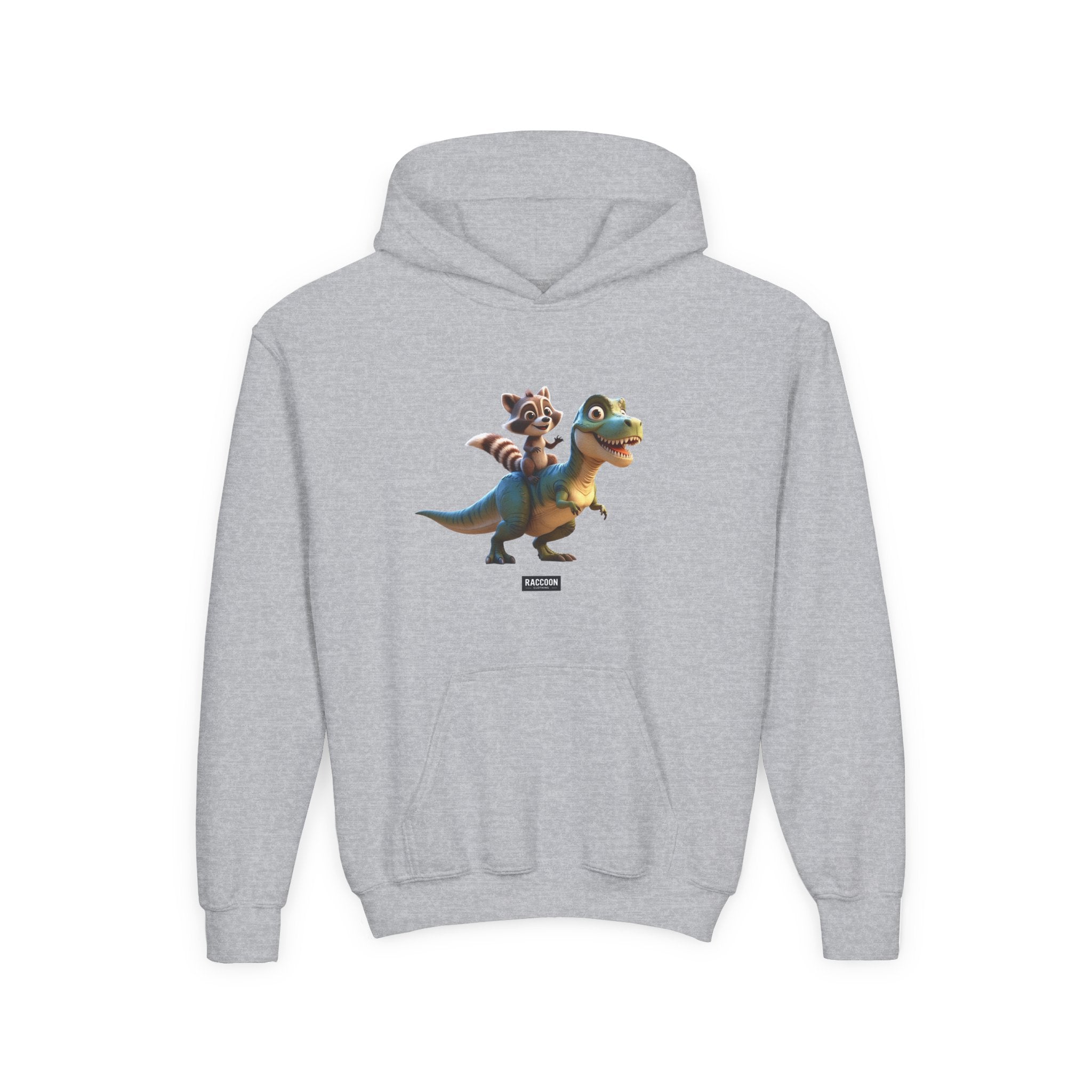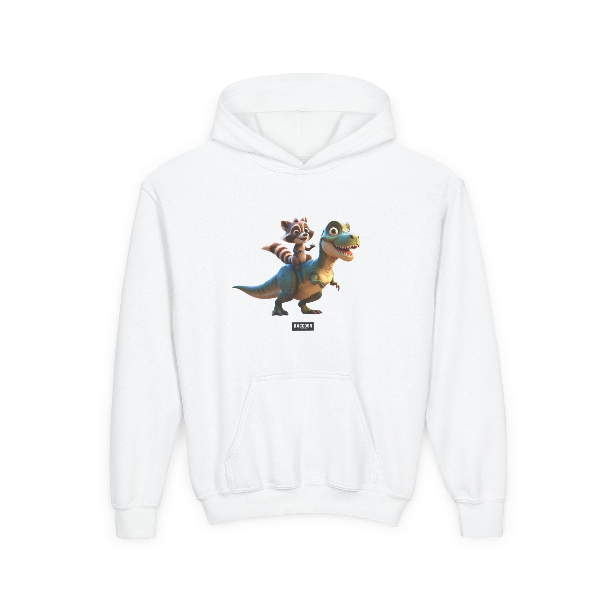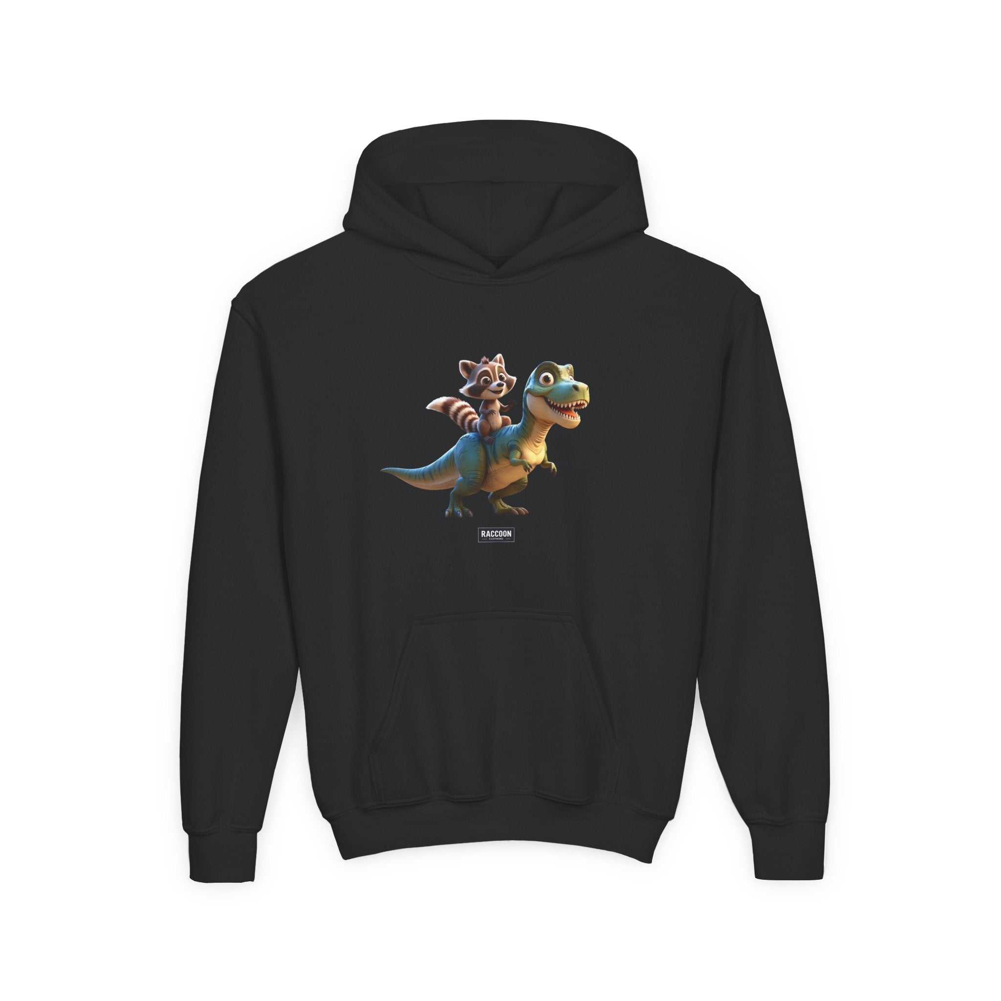 Let your little one show off their playful side with this kids Hoodie featuring a happy cartoon raccoon riding on...