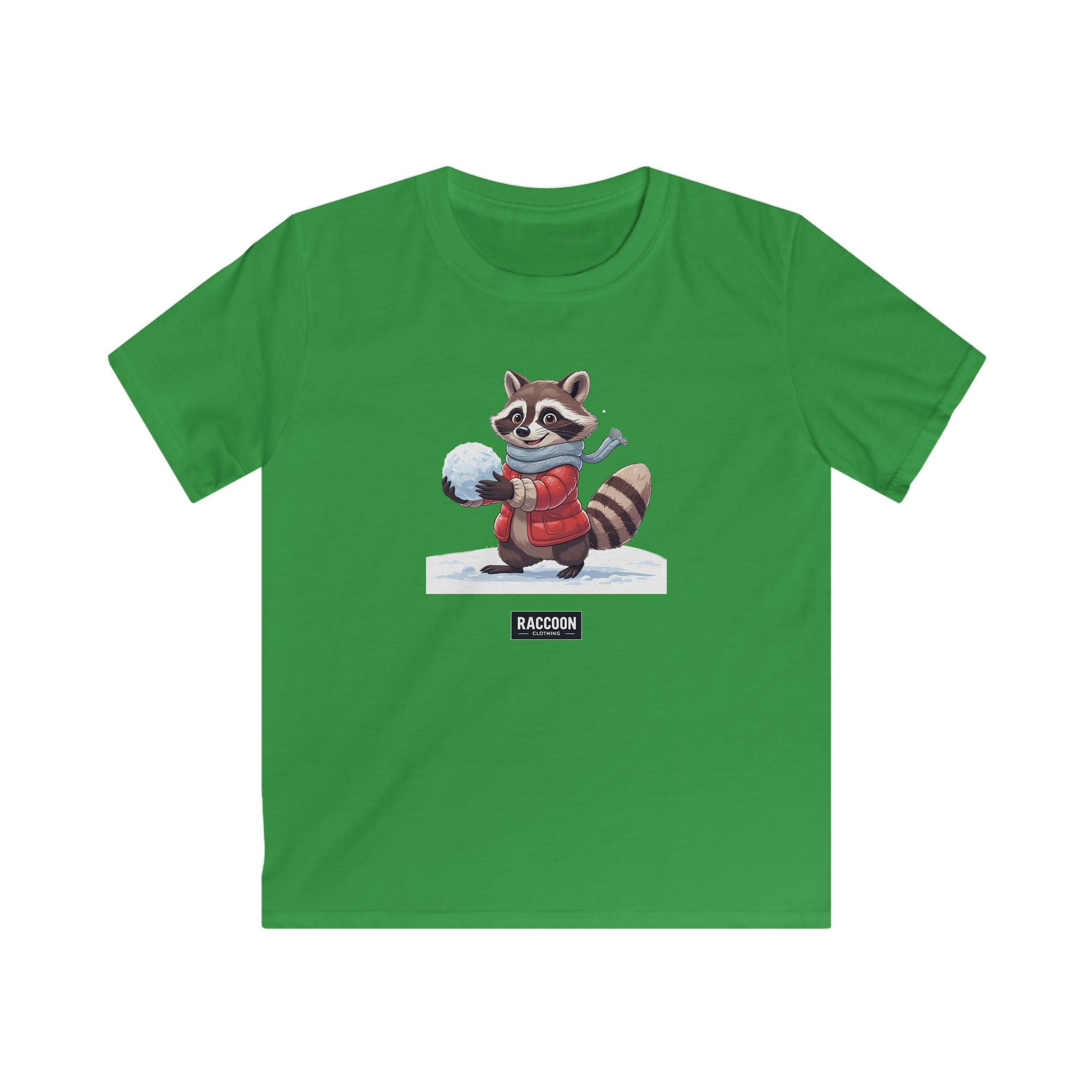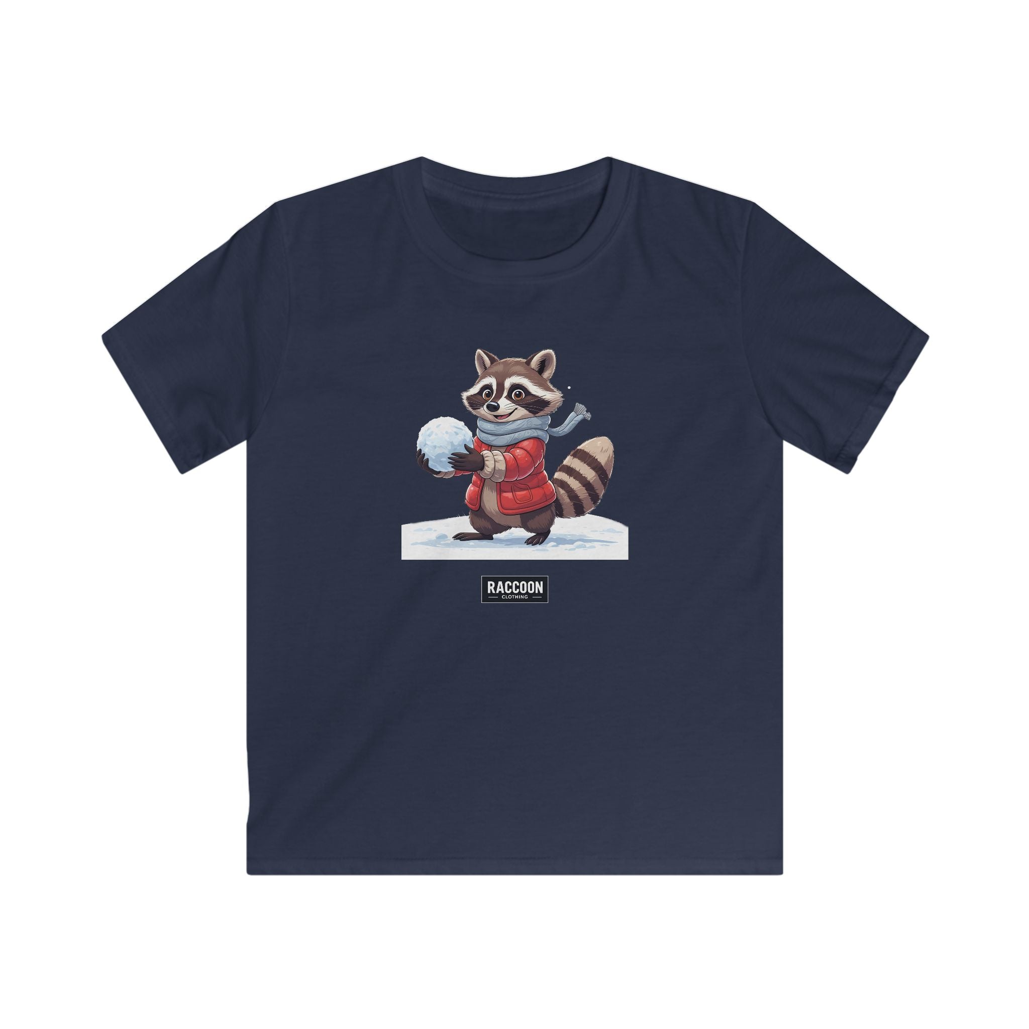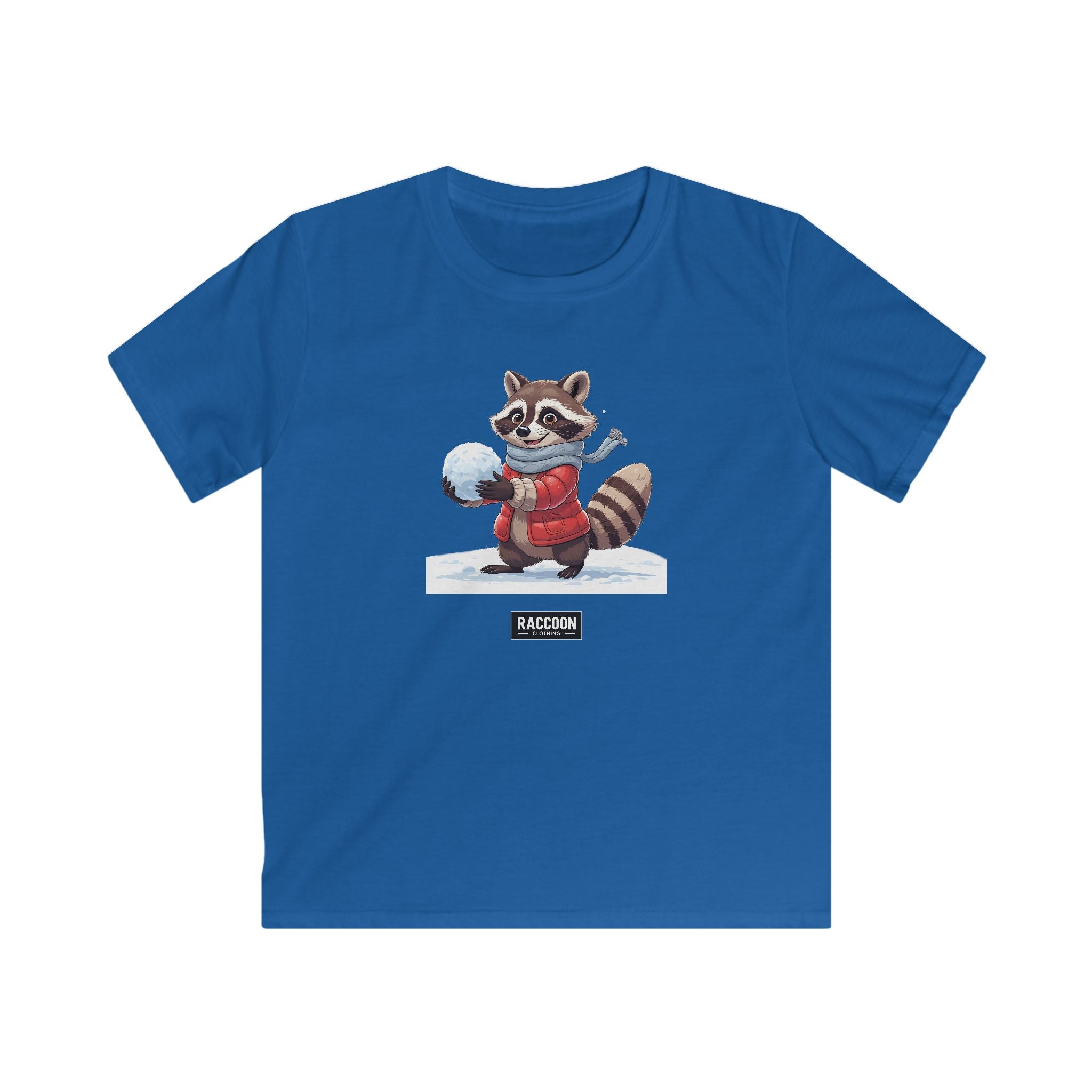 This adorable raccoon, dressed in a cozy red jacket and scarf, is ready for winter fun with a snowball in...