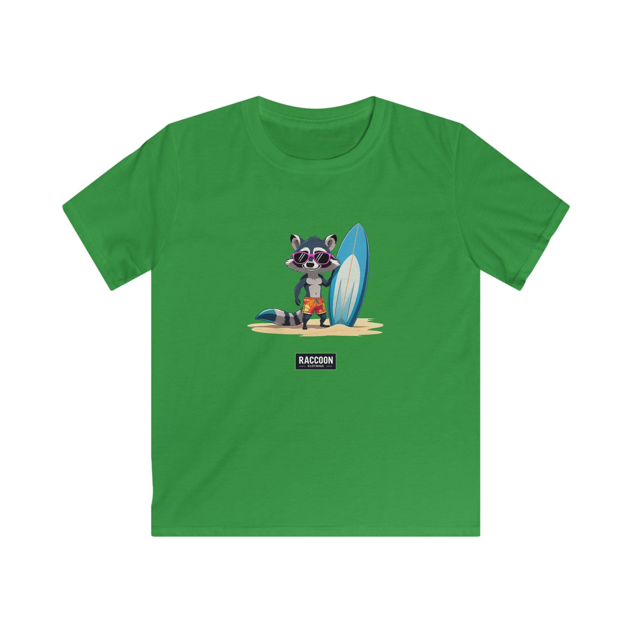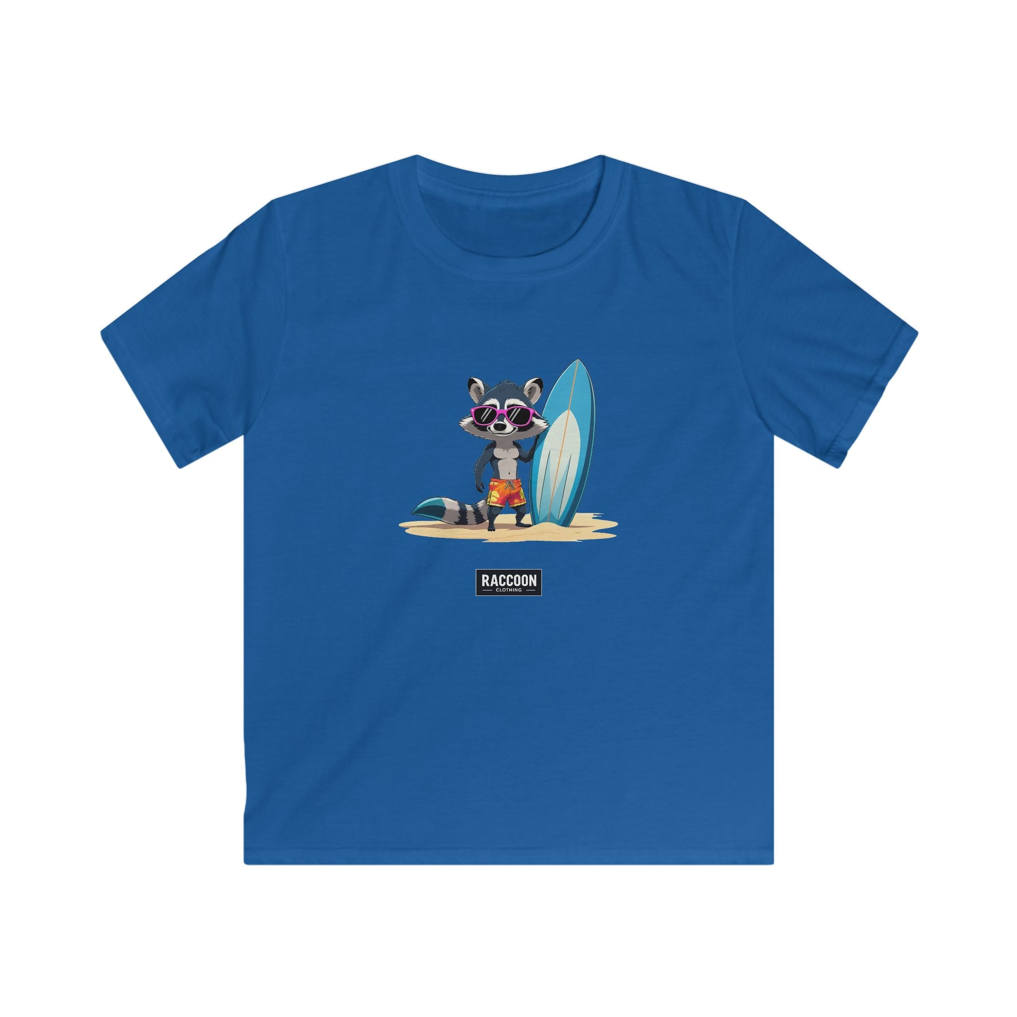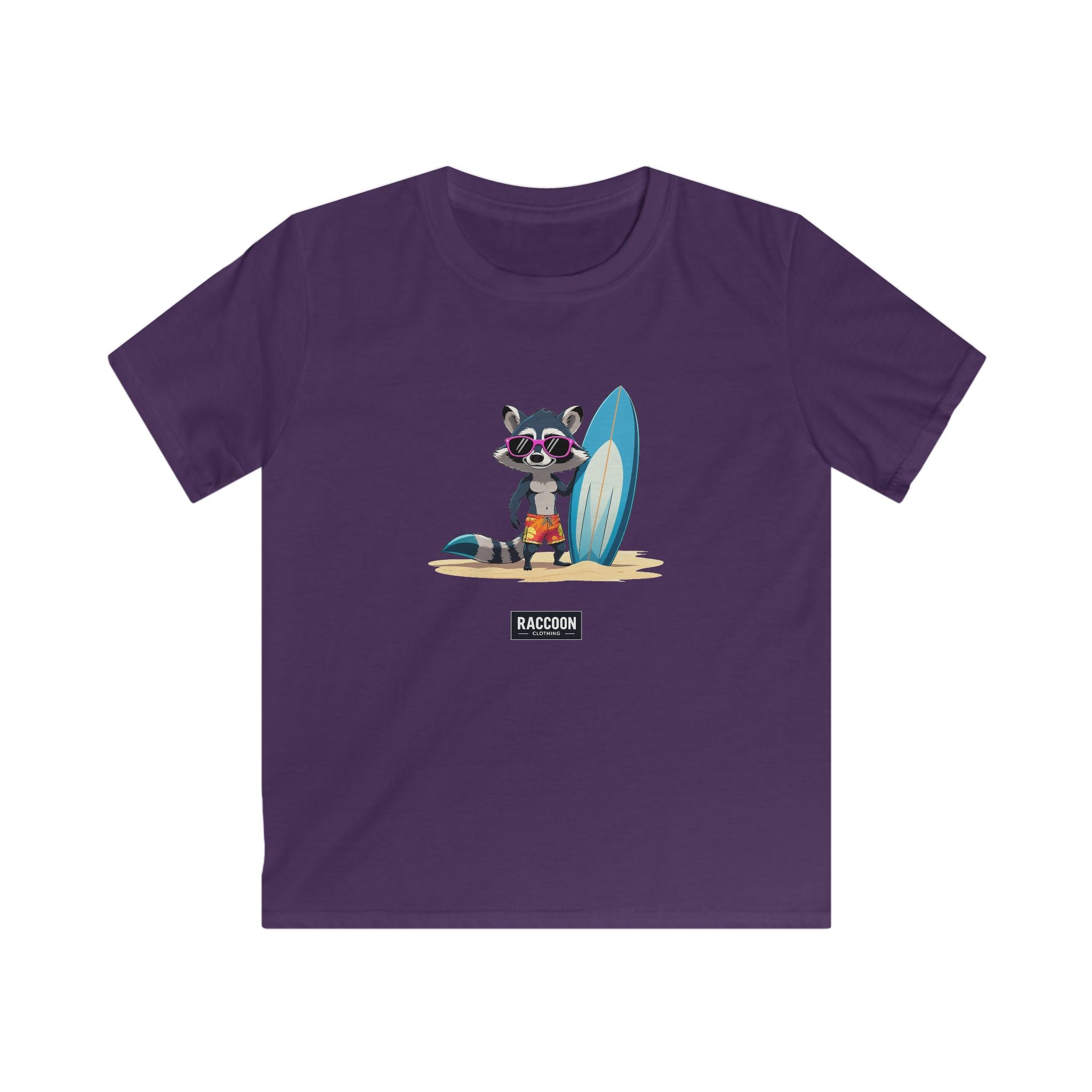 Featuring a chill raccoon rocking sunglasses, beach shorts, and a big surfboard, this design brings sunny-day energy, perfect for adventurers...